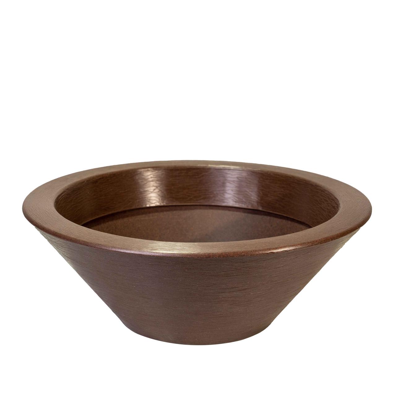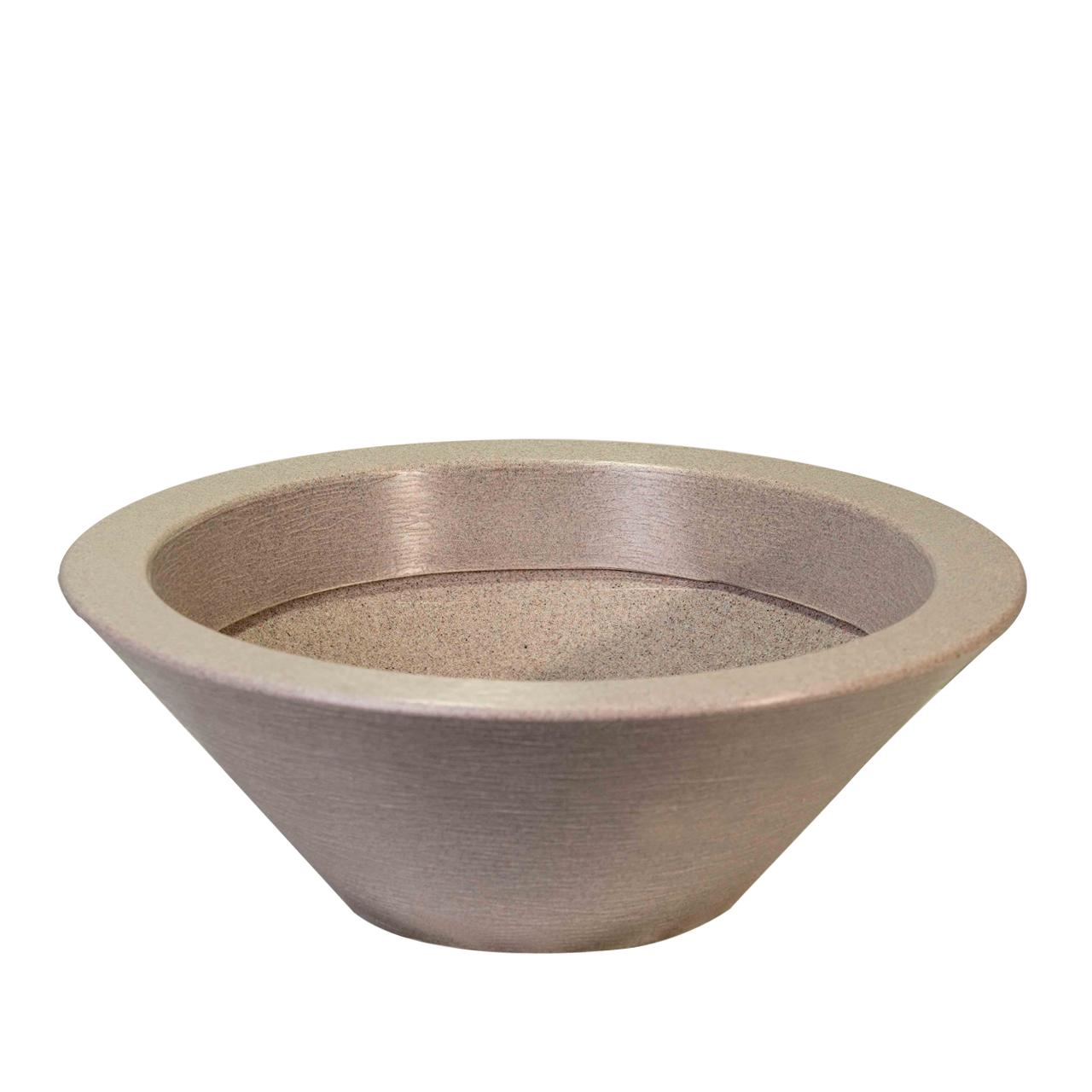 קערת שתילה קונית. בעלת גימור חיצוני מוברש / גלים. אידיאלית לשימוש במרפסות, גינות, חללים ציבוריים פתוחים ועוד. ניתן גם לשימוש פנים. הקערה זמינה ב-3 גדלים שונים ובמגוון של 5 צבעים טבעיים שונים.